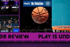 高科技回放顯示蓋帽時球未在籃筐正上方范圍內(nèi)