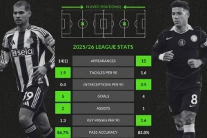 體育資訊12月20日訊 切爾西即將在英超焦點(diǎn)戰(zhàn)客戰(zhàn)紐卡,whoscored也對(duì)比了兩隊(duì)中場(chǎng)核心本賽季聯(lián)賽關(guān)鍵數(shù)據(jù)。