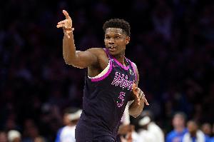 此役,愛德華茲出戰(zhàn)40分鐘,20投9中,三分球6中3,罰球6中5,得到26分12籃板3助攻3搶斷2封蓋。