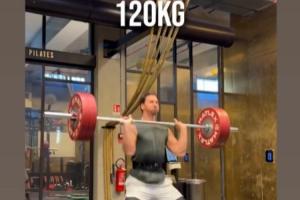 視頻中,伊布從100kg的重量開(kāi)始挺舉,一直穩(wěn)穩(wěn)舉到120kg。
