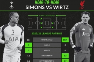 哈維·西蒙斯(熱刺):8次首發(fā)、5次替補,1球、2助攻,場均1.1射門、0.6關(guān)鍵傳球、0.8過人、傳球成功率82.9%,獲評6.64分