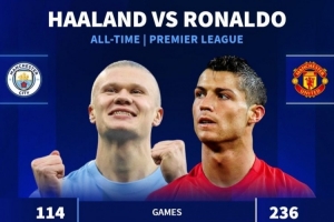 哈蘭德114場(chǎng)英超104球21助攻+聯(lián)賽2冠,C羅236場(chǎng)103球47助攻+3冠