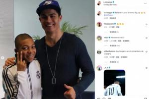 賽后,姆巴佩更新社媒,發(fā)布了本場比賽自己進球后模仿C羅“SIUUU”慶祝的圖片和自己少年時與C羅的合影,并配文道:“相信你的夢想。致敬王者????”并@了C羅的賬號。