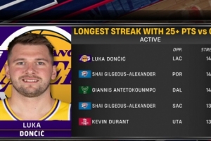 他太愛打快船了!東契奇VS快船已連續(xù)14場25+ 并列聯(lián)盟現(xiàn)存最長