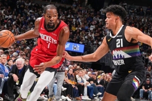 這套單側(cè)邊線啟動、吸注意找弱側(cè)套路一開,掘金夾擊輪轉(zhuǎn)都慢一拍了。雖然今天杜蘭特有精彩的半場破領防游動中投,但火箭今天的傳球真開了。