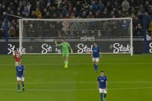 在約克雷斯罰進(jìn)點(diǎn)球后,埃弗頓門將皮克福德很懊惱。撿起皮球怒踢一腳險(xiǎn)些踢到薩卡,隨后還朝阿森納球員比中指。
