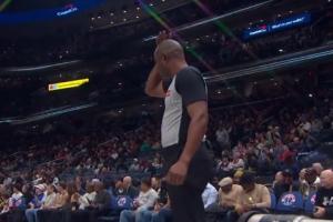 GIF-文班跳球時(shí)肘到裁判腦袋 裁判問(wèn)題不大繼續(xù)執(zhí)裁比賽