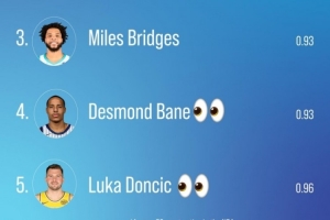 體育資訊12月22日訊 數(shù)據(jù)專家Kirk Goldsberry曬出了本賽季至今平均每次跳投得分最少的球員倒數(shù)前五榜單,具體如下: