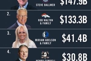 排在第四的是亨利·塞繆爾,他是冰球安納海姆鴨隊老板。