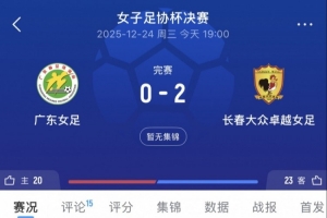中國女子足協(xié)杯決賽今晚在廣東省肇慶市肇慶新區(qū)足球場進行,長春大眾卓越女足vs廣東省女足,閆琪、桑德琳·尼永庫魯各入一球,最終長春女足以2-0的比分擊敗對手奪得冠軍,這也是吉林省首個足協(xié)杯冠軍。