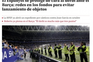 考慮到目前球隊排名西甲第五、距離歐冠區(qū)僅一步之遙的大好形勢,俱樂部不希望因球迷騷亂而遭受處罰。為此,西班牙人決定在主場球門后方的看臺加裝防護網(wǎng),以防止球迷向場內(nèi)投擲雜物。