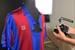 而巴薩主席拉波爾塔也曾拿著這件球衣拍照,為Matchday的這次歷史性拍賣宣傳。