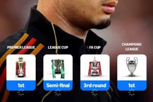 阿森納點球大戰(zhàn)淘汰水晶宮晉級聯(lián)賽杯四強,在2025-26賽季接近過半的情況下,槍手保留著四線爭冠的可能。