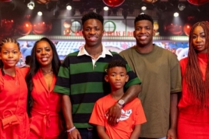 照片中,維尼修斯身穿休閑的綠黑條紋衫,笑容燦爛,被身著紅色節(jié)日盛裝的親友環(huán)繞。