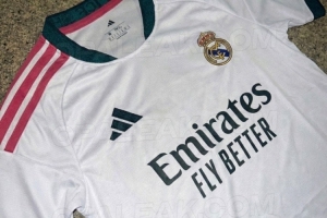 皇馬下賽季主場(chǎng)球衣諜照:經(jīng)典白色主色調(diào),深綠鑲邊+粉紅三道杠