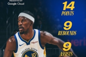 全能表現(xiàn)!勇士官推發(fā)布最佳球員數(shù)據(jù)海報:巴特勒14+9+9當選