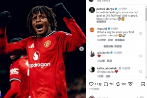 多爾古社媒:在老特拉福德斬獲首球的感覺不可思議,圣誕快樂!