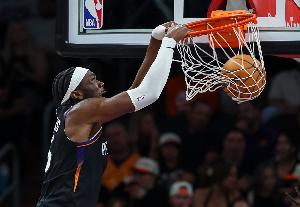 本場(chǎng)比賽,太陽(yáng)中鋒馬威攻防兩端表現(xiàn)出色,打了27分鐘13投9中,罰球8中6拿到24分13籃板2助攻2搶斷1蓋帽,正負(fù)值+14。