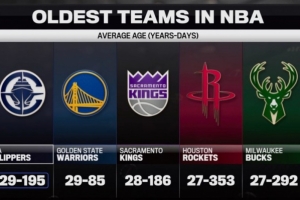 轉(zhuǎn)播方曬出一組數(shù)據(jù),本賽季聯(lián)盟最老的5支球隊(duì)平均年齡如下: