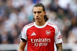 阿森納首發(fā):1-拉亞、49-斯凱利(33-卡拉菲奧里熱身時(shí)受傷,臨時(shí)調(diào)整)、2-薩利巴、5-因卡皮耶、36-蘇維門迪、41-賴斯、23-梅里諾、8-厄德高、7-薩卡、19-特羅薩德、14-約克雷斯
