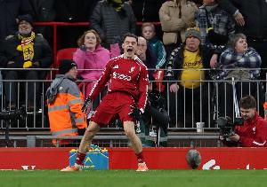 體育資訊12月28日訊 利物浦vs狼隊第42分鐘,?;倏藬嗲蚝笕饲蚍诌^,直塞助攻維爾茨破門,后者打進利物浦生涯首球。
