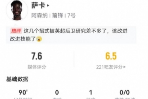 體育資訊12月28日訊 阿森納在本輪英超對陣布萊頓,薩卡本場數(shù)據(jù)如下: