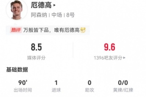 下一篇: 赫拉芬貝赫本場3射進1球 2攔截3搶斷+8對抗6成功 獲評8.2分