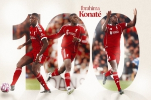 利物浦官方也通過社媒曬出紀(jì)念海報祝賀:“科納特在今晚達(dá)成了英超100場里程碑。”
