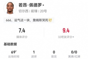 體育資訊12月28日訊 切爾西在本輪英超對陣維拉,若昂·佩德羅本場數(shù)據(jù)如下:
