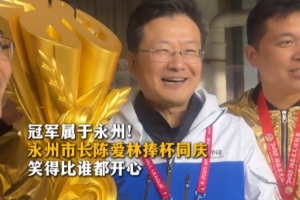 永州隊(duì)“湘超”奪冠,永州市長陳愛林捧杯:開心!特別開心!