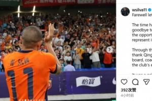 體育資訊12月28日訊 今天,韋林頓·席爾瓦更新社媒,向青島海牛俱樂部和球迷告別。