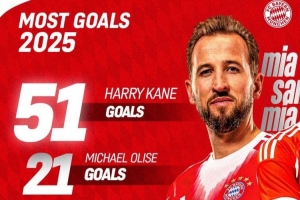 拜仁官方回顧年度數(shù)據(jù):凱恩51球、奧利塞24助、基米希出場時間王