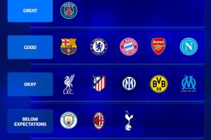 頂級(挺好的):巴薩、切爾西、拜仁、阿森納、那不勒斯