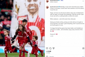 “迪奧戈,我知道我們再也無法和你一起踏上足球場了,我的兄弟。但昨天的感覺就像我們又在一起并肩作戰(zhàn)一般。你的一部分與我們同在,賽前就陪伴在我們身邊?!?/p>