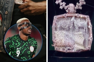 據(jù)介紹,這條項(xiàng)鏈委托珠寶商Benny The Jeweler打造,由14000顆寶石鑲嵌而成,共986克拉,項(xiàng)鏈總重近1.5公斤。項(xiàng)鏈正面鑲嵌著一只山羊(goat),飾有奧斯梅恩的名字首字母和球衣號碼“VO9”,下方是綠色黃金打造的尼日利亞國旗,并疊印女兒海莉的名字。項(xiàng)鏈背面刻有設(shè)計師的簽名,該品牌在社媒展示了這款項(xiàng)鏈,配上“MVP”字樣縮寫,項(xiàng)鏈上面還點(diǎn)綴了微型足球圖案。