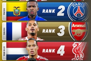 以下是2025年最佳中后衛(wèi)前五榜單: