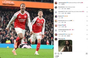 本場比賽加布里埃爾破門先拔頭籌,賽后當選英超官方全場最佳。他也在個人社媒曬出本場慶祝照片,配文寫道:“所有贊美和榮耀歸于上帝!”
