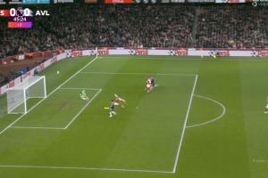 在上半場補時階段,維拉中場直塞發(fā)動反擊,桑喬前插后橫傳,就在沃特金斯即將踢空門時,薩利巴倒地伸腿將球鏟出底線。