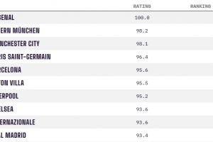 英超霸榜!OPTA年終實(shí)力榜:槍手第1拜仁曼城隨后,前10英超占5席