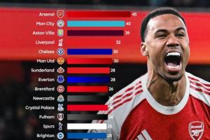 優(yōu)勢(shì)較大3隊(duì):阿森納45分、曼城40歲、維拉39分