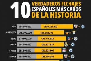 計算通脹后西班牙球員轉(zhuǎn)會費排行:凱帕1.08億歐第1 托雷斯9000萬