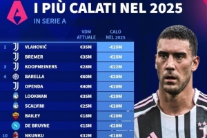 意甲2025身價(jià)跌幅榜:DV9領(lǐng)銜尤文4將 巴雷拉、盧克曼、恩昆庫在列