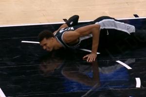今日馬刺134-132戰(zhàn)勝尼克斯的比賽第四節(jié),文班搶籃板落地時,大腿和克拉克森有個碰撞,導致左腿落地不適,左膝似乎有些過度伸展,他隨后一瘸一拐返回更衣室。但最后時刻文班返回了替補席為隊友加油,沒有上場。