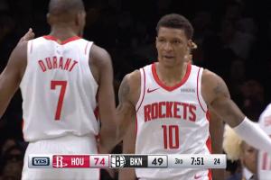 GIF-伊森防守端蓋帽?。⌒≠Z進(jìn)攻端三分球??!打?;@網(wǎng)??!