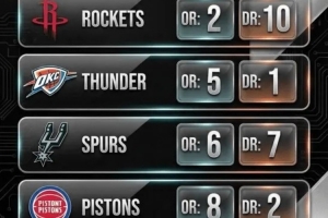 賽季至今攻防效率值均前10球隊(duì):火箭、雷霆、馬刺、活塞、森林狼