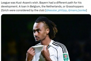 體育資訊1月2日訊 據(jù)記者Philipp Kessler報(bào)道,富勒姆考慮在本月提前終止拜仁18歲前鋒庫西·阿薩雷的租借合同。