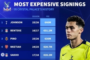 體育資訊1月3日訊 水晶宮已經(jīng)官宣簽下熱刺邊鋒布倫南·約翰遜,《轉(zhuǎn)會市場》統(tǒng)計顯示他也是水晶宮隊史最貴新援。
