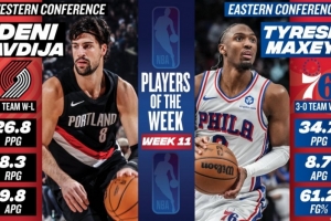 體育資訊1月6日訊 今日NBA官方宣布,開拓者球星阿夫迪亞和76球星馬克西分別當選本賽季第11周西部和東部周最佳球員。