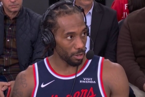 體育資訊1月6日訊 NBA常規(guī)賽,快船主場103-102險勝勇士,小卡在場邊接受了媒體采訪。