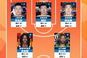 2025-2026賽季CBA聯(lián)賽常規(guī)賽第11輪結(jié)束較量,來(lái)自上海久事大鯊魚的李弘權(quán) ,北京首鋼的周琦,山東高速的陶漢林,深圳新世紀(jì)烈豹的史密斯和遼寧的威爾斯入選CBA聯(lián)賽常規(guī)賽第11輪最佳陣容!